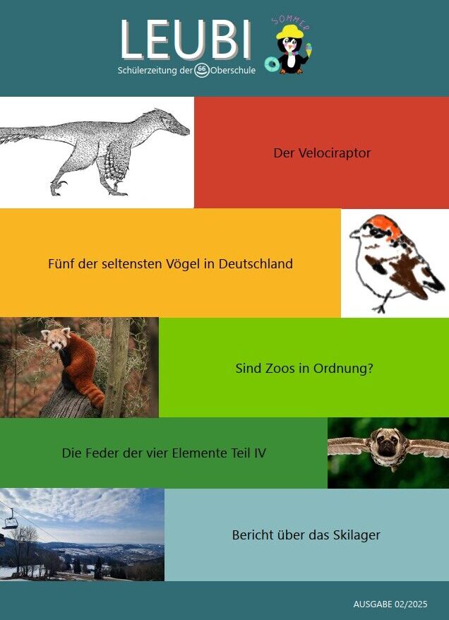 Kurz vor den Sommerferien erscheint die 7. Ausgabe der “LEUBI”. Die Schülerzeitung wird von den Mitgliedern der Schülerzeitung-AG mit Unterstützung von Frau Heuschmidt veröffentlicht. Themen der neuen Ausgabe sind: die Klassenfahrt der Klassen 6a und 6b, ein Bericht über das Skilager der Klassenstufe 7, ungewöhnliche Feiertage, Katzen und vieles mehr.