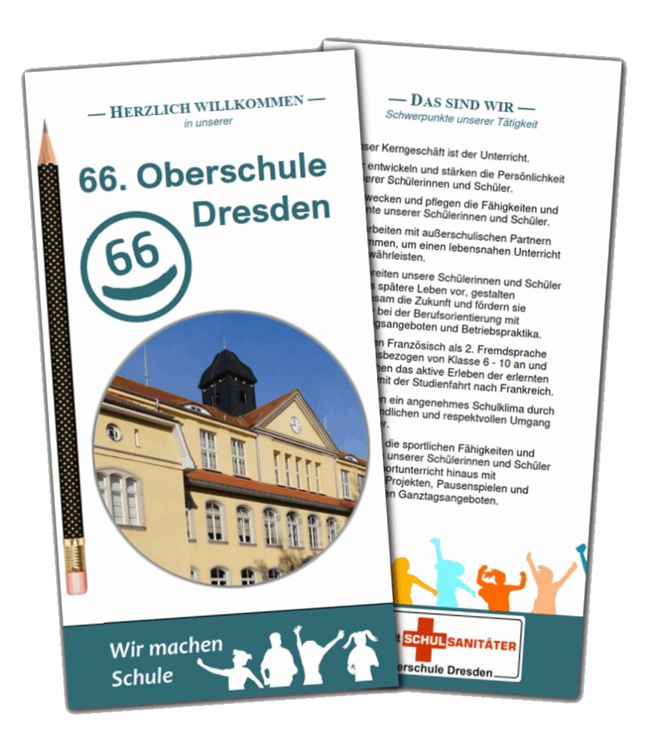 Unser Schulflyer wurde aktualisiert. Nun finden Sie ihn in der neuesten Version und mit den sich im laufenden Schuljahr ergebenen Änderungen an den bekannten Stellen auf der Startseite unserer Homepage oder unter www.66os.de/schule/schulleben/schulanmeldung/ sowie direkt hier.